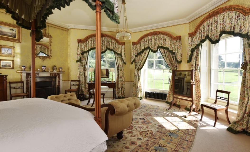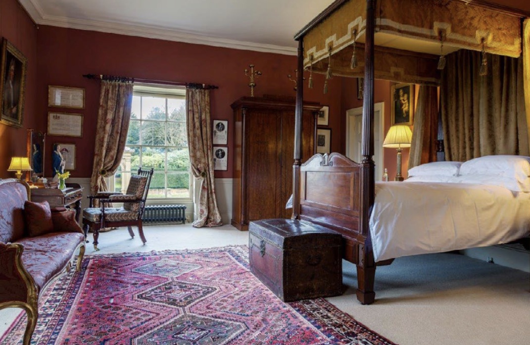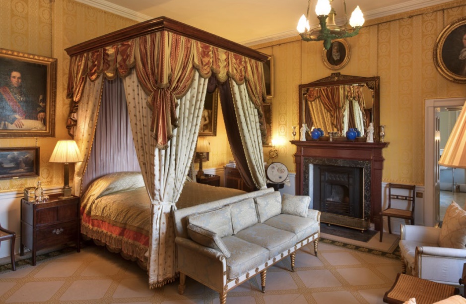 Room price: £357. Suitable for couple. Portico faces north with views over the front of The Estate. With a four-poster super king sized bed and en-suite with shower-in-bath.